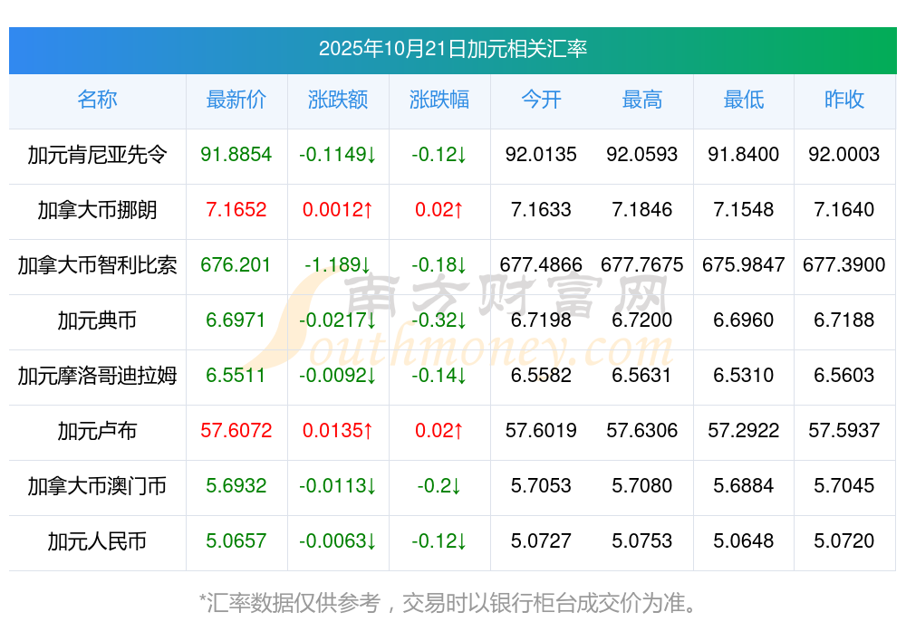 根據(jù)2025年10月21日匯率計算,CAD兌換PLN匯率最新價2.596600:今日開價2.5925,昨日收價2.5924,最高價2.5974,最低價2.5895。