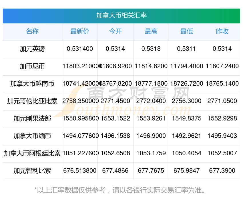 南方財(cái)富網(wǎng)為您提供加拿大幣對(duì)蘭幣匯率最新價(jià)格詳情。