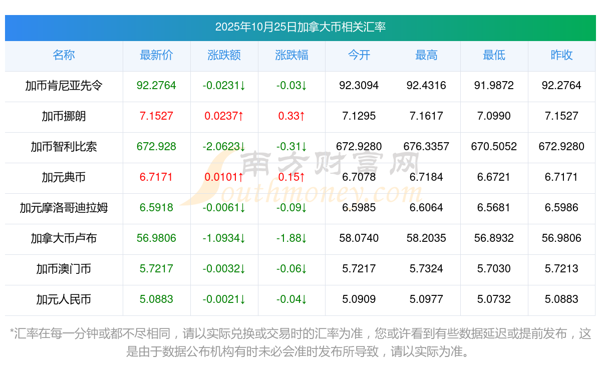 2025年10月25日加拿大幣相關(guān)匯率查詢