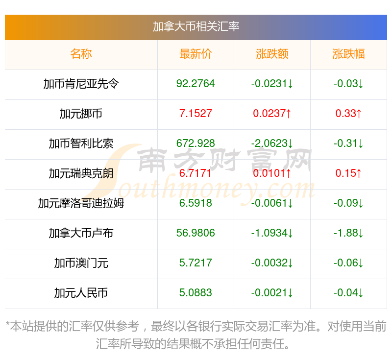 南方財富網(wǎng)為您提供加拿大幣對雷亞爾匯率最新價格詳情。
