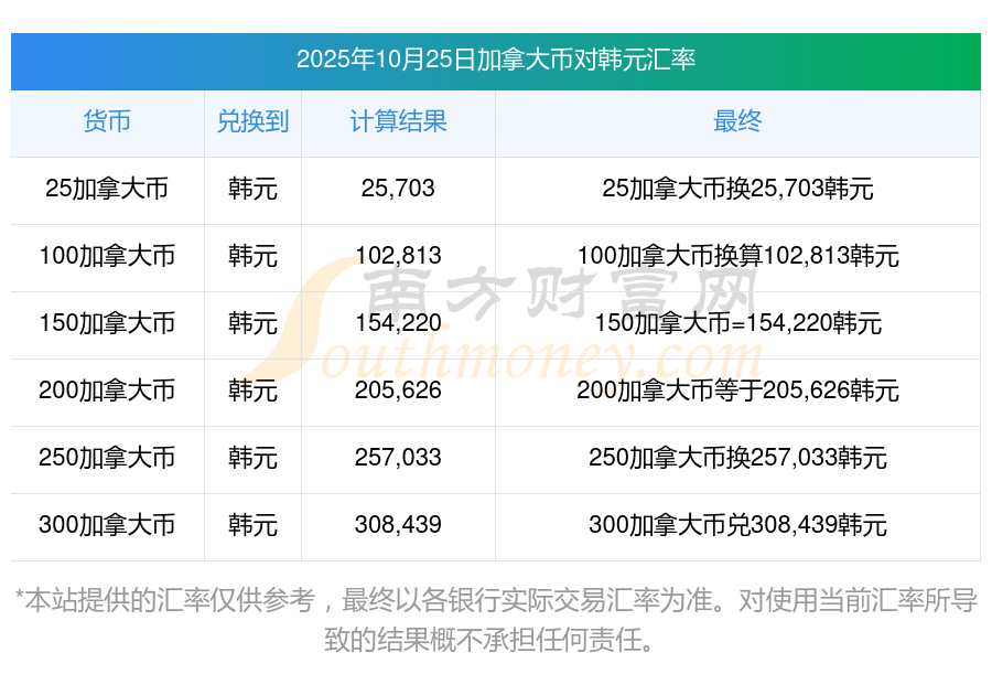 2025年10月25日加拿大幣與韓元的兌換匯率計(jì)算如下: