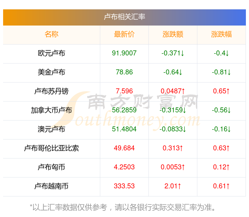 南方財(cái)富網(wǎng)為您提供盧布對美元匯率最新價格詳情。