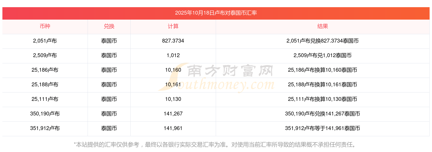 盧布兌泰國幣匯率一覽?今日匯率查詢2025/10/18