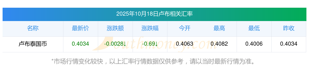 - 匯率查詢:盧布計(jì)算人民幣多少錢?(2025年10月15