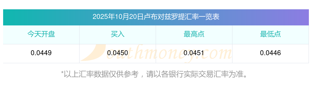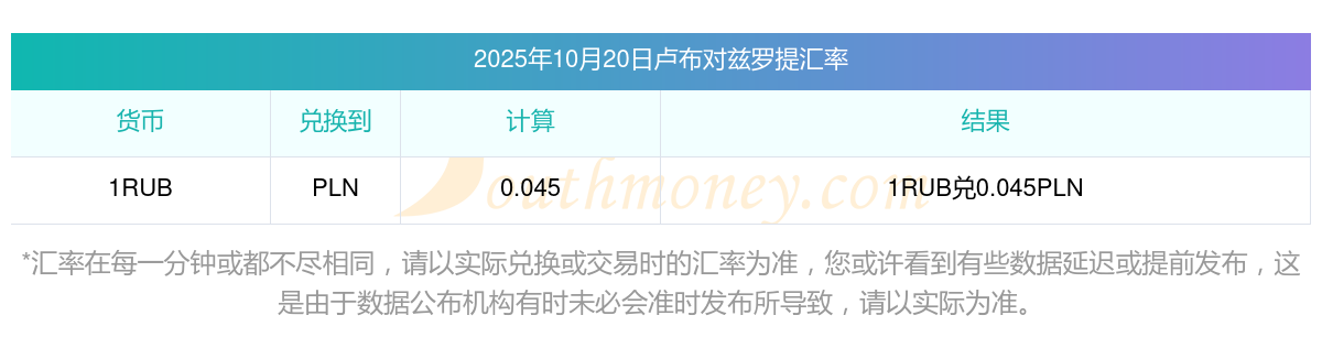 盧布今日匯價(jià):2025年10月20日盧布兌茲羅提匯價(jià)查詢