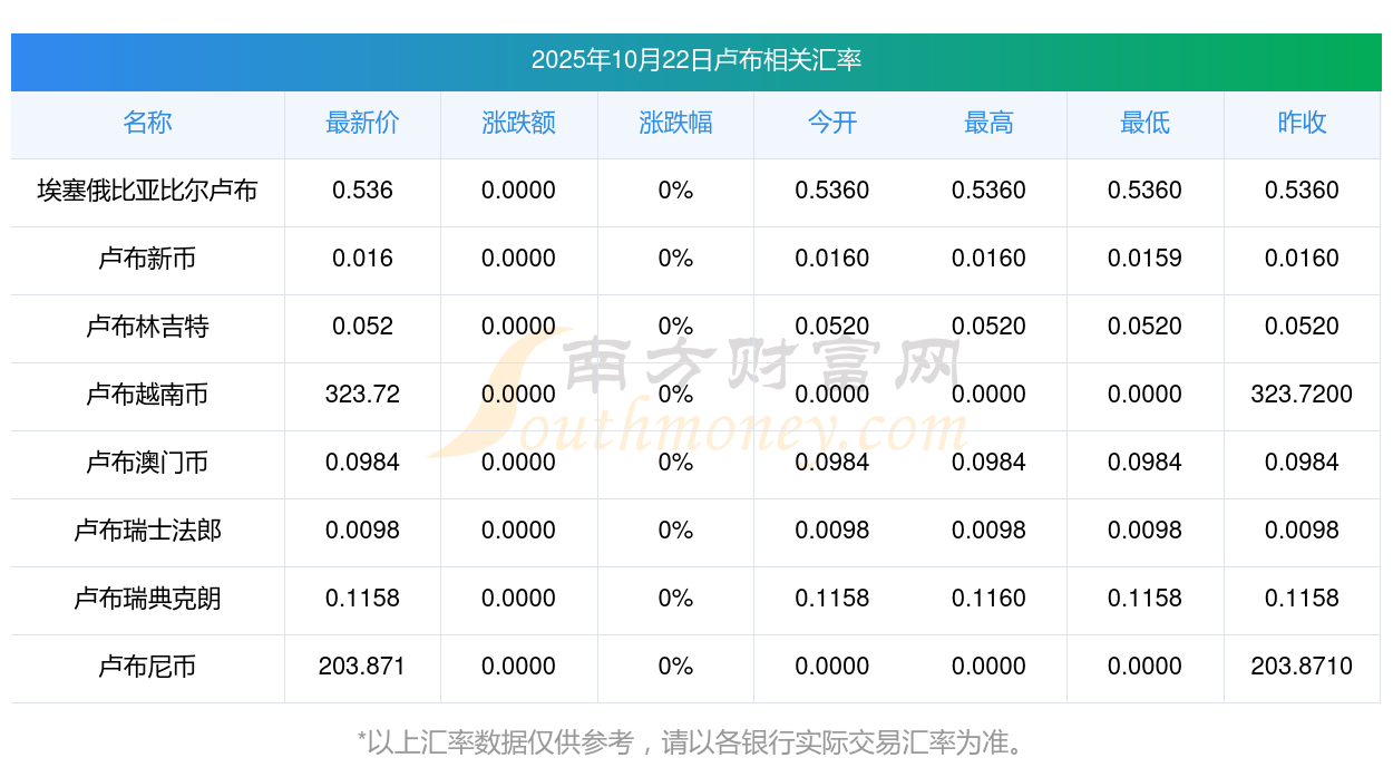 今天的匯率多少? 盧布轉(zhuǎn)換港元匯率中間價(jià)是多少? 10月22日