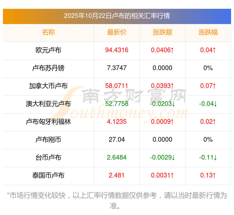 根據(jù)2025年10月22日匯率計(jì)算,RUB兌換MMK匯率最新價(jià)25.806500,今開價(jià)0.0000,昨收價(jià)25.8065,最高價(jià)0.0000,最低價(jià)0.0000。