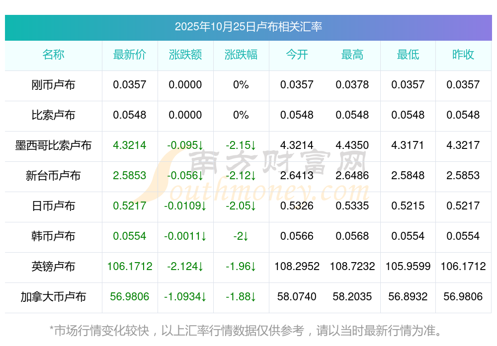 2025年10月25日盧布相關(guān)匯率查詢