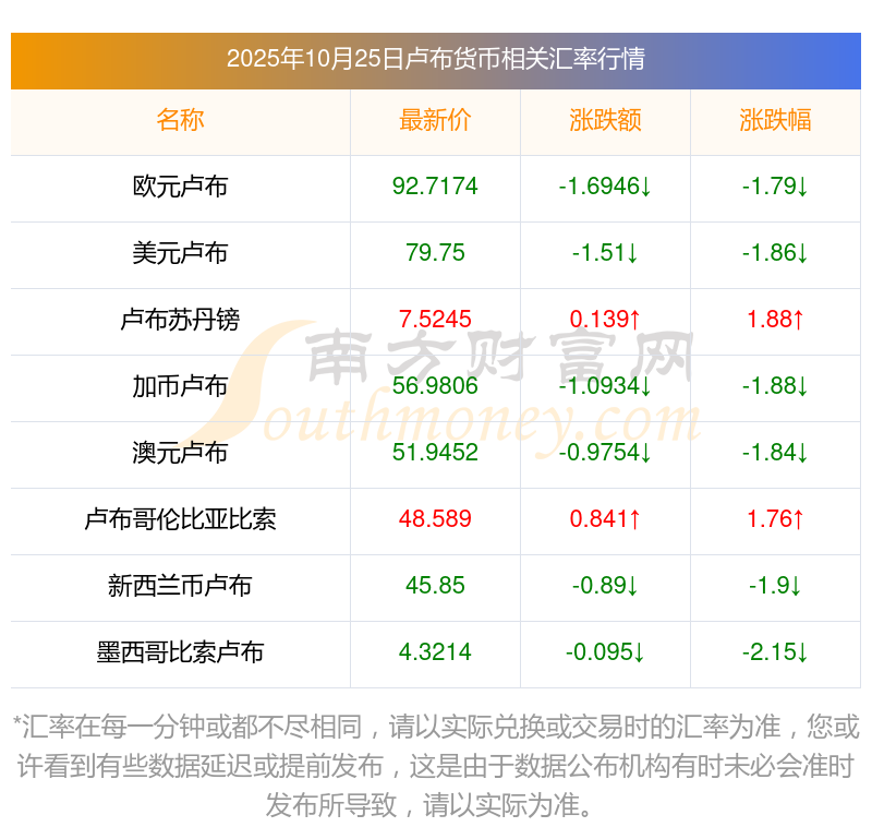 - 盧布對(duì)典幣匯率行情一覽表(2025年10月21日)