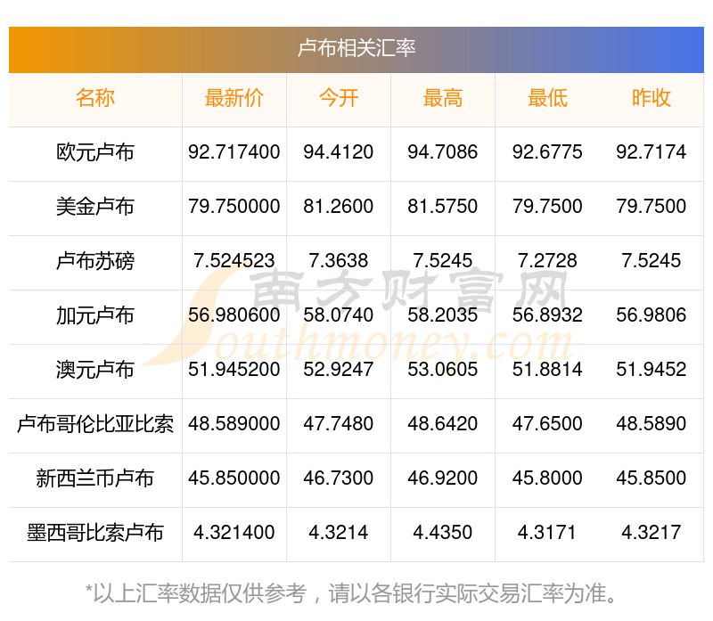 根據(jù)2025年10月26日匯率,盧布兌換秘魯新索爾匯率最新0.042443,今開0.0424,昨收0.0424,最高0.0425,最低0.0416。