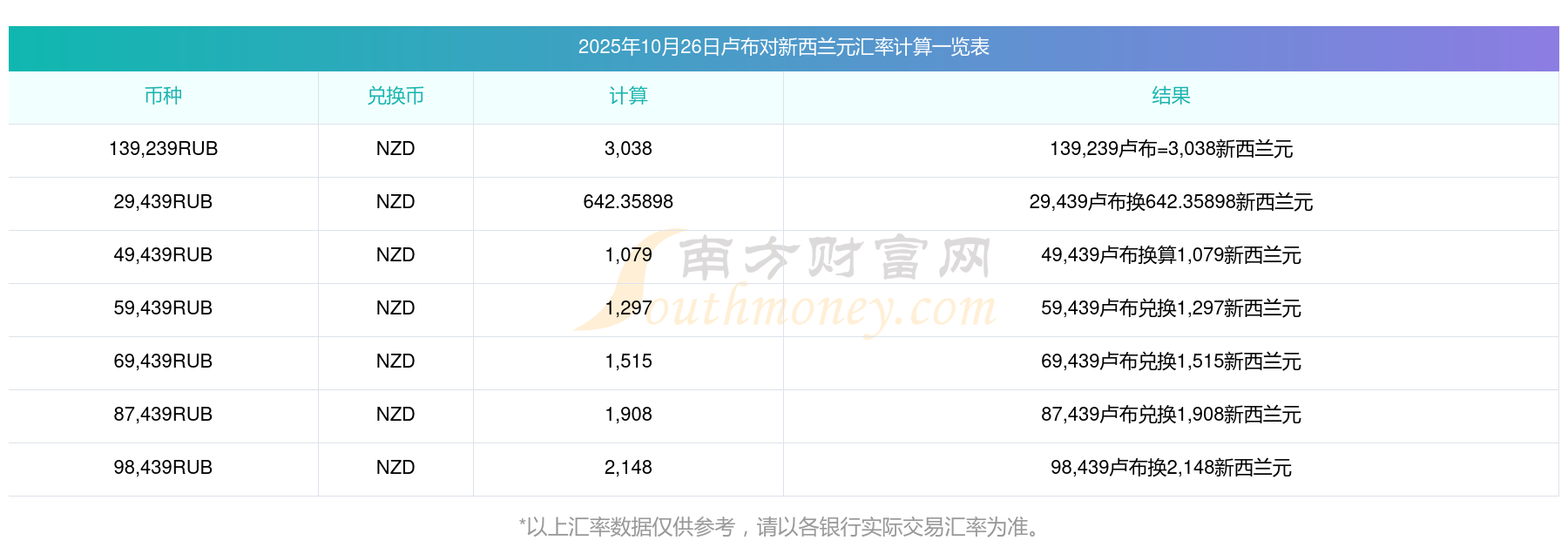 2025年10月26日盧布兌換新西蘭元的匯率是:0.02182