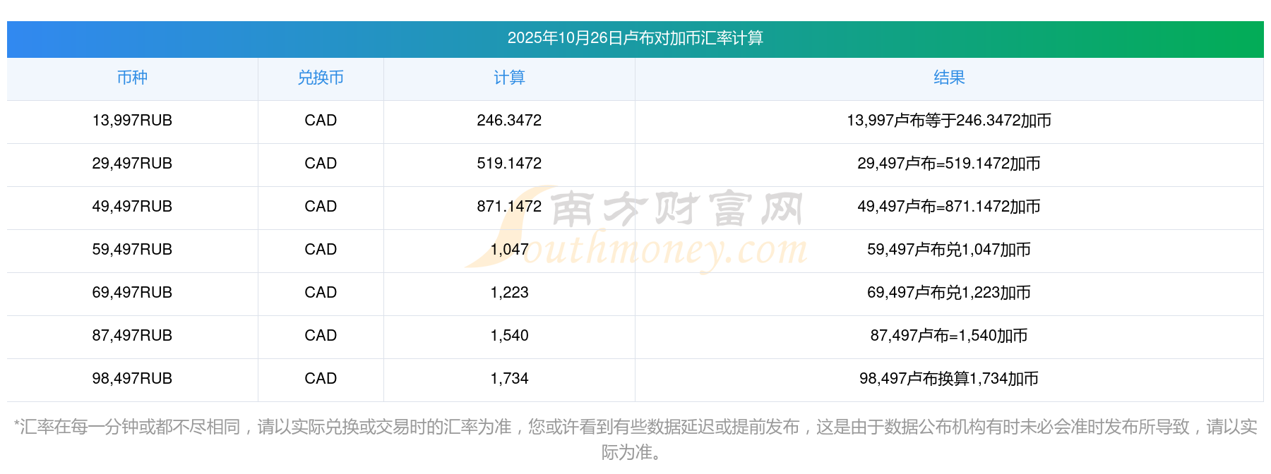 今天購匯查詢:490盧布對(duì)加幣匯率多少?10-26