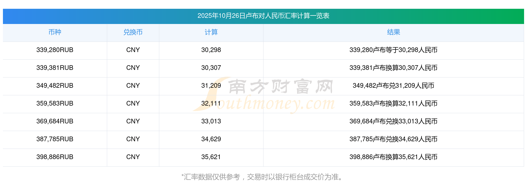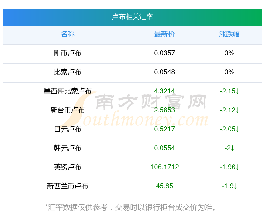 南方財富網(wǎng)為您提供盧布對人民幣匯率最新價格詳情。