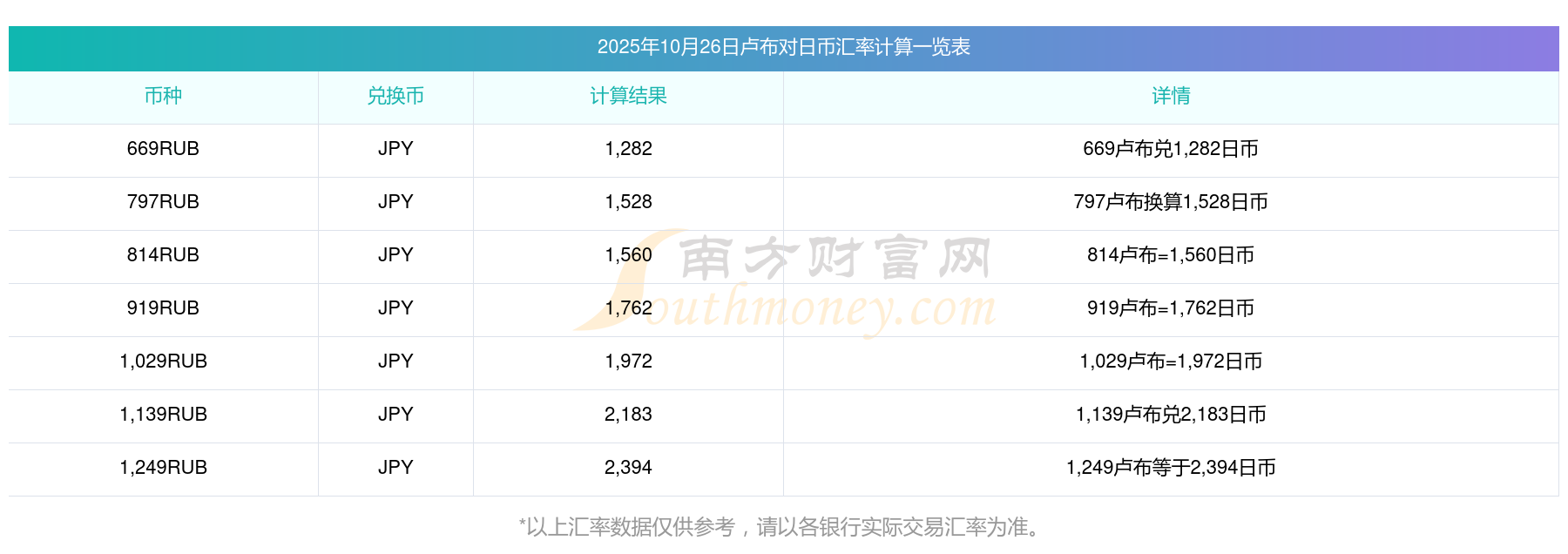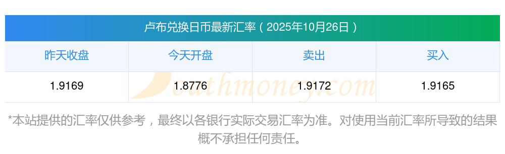 轉(zhuǎn)換 貨幣,盧布到日元是多少?2025/10/26