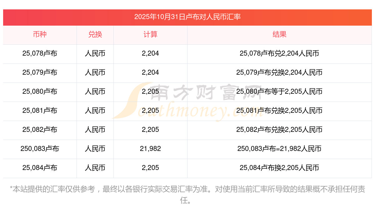今天盧布2947 RUB 兌 CNY匯率多少(2025/10/31)