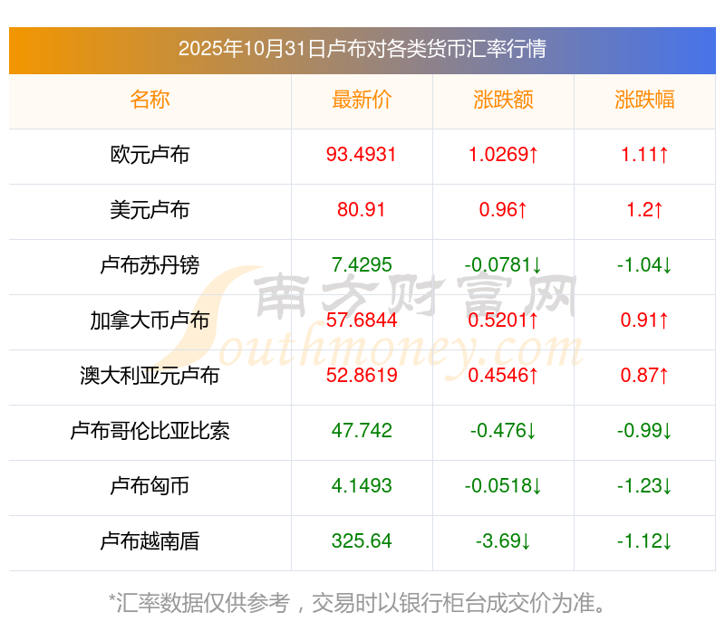 南方財富網(wǎng)為您提供盧布對人民幣匯率最新價格詳情。
