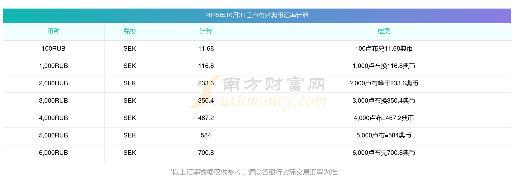 匯率實(shí)時(shí)更新!84盧布兌換典幣匯率表(2025年10月31日)