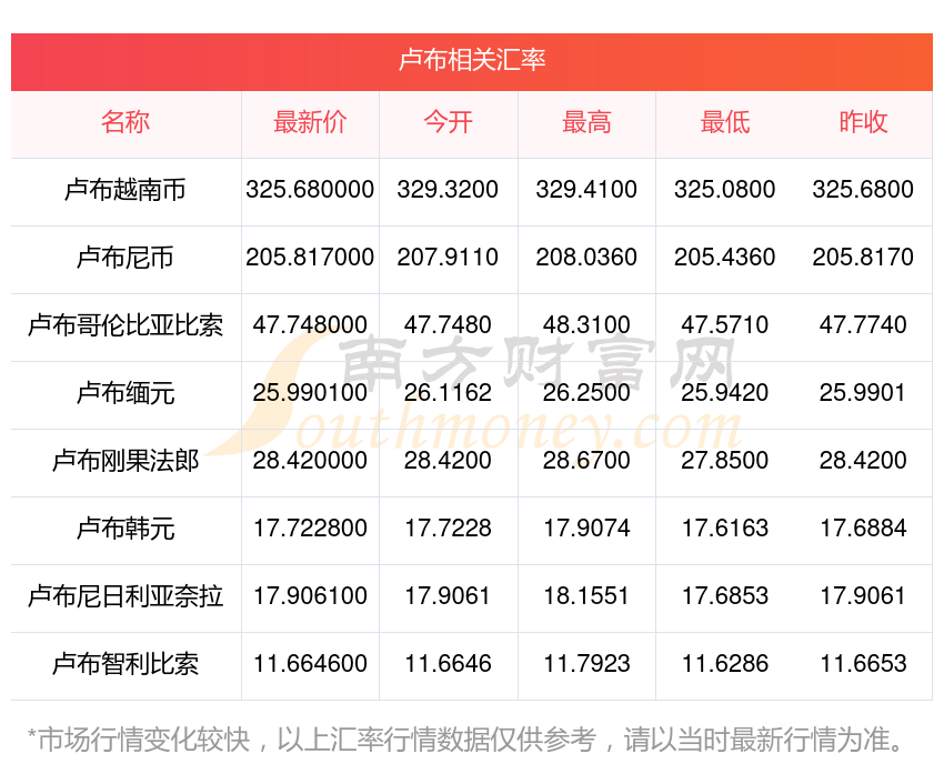南方財(cái)富網(wǎng)為您提供盧布對阿根廷比索匯率最新價(jià)格詳情。