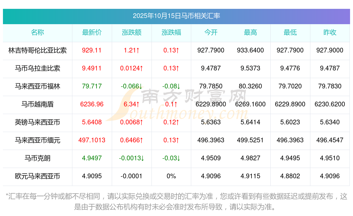 2025年10月15日馬幣相關(guān)匯率查詢