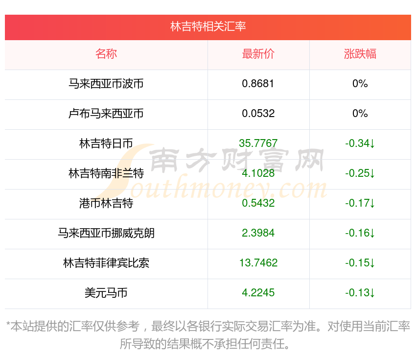南方財富網(wǎng)為您提供林吉特對摩洛哥迪拉姆匯率最新價格詳情。