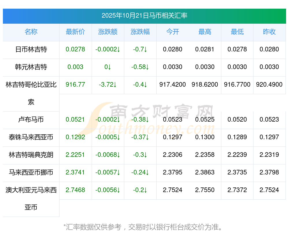 - 馬幣對(duì)哥倫比亞比索匯率價(jià)格查詢(2025年10月15日)
