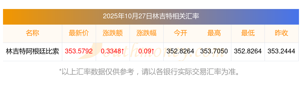 林吉特對阿根廷比索匯率價格查詢(2025年10月27日)