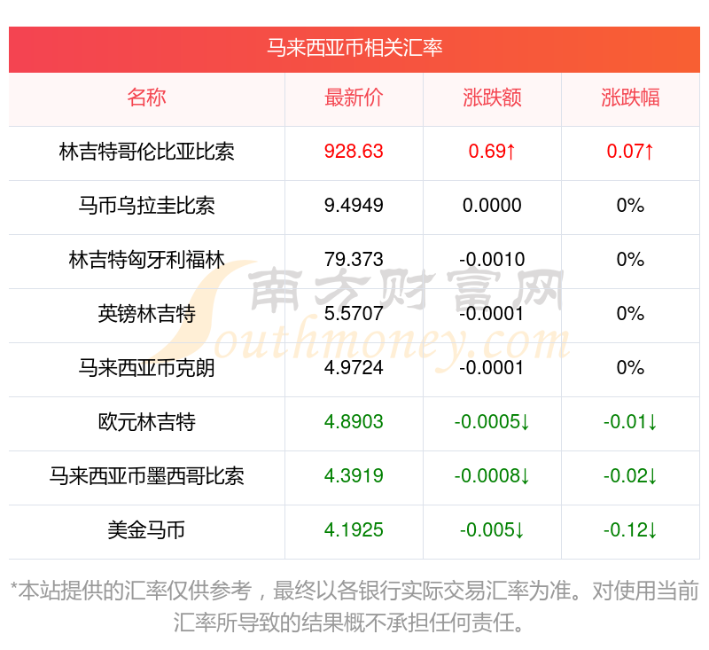 2025年10月29日馬來西亞幣相關(guān)匯率查詢