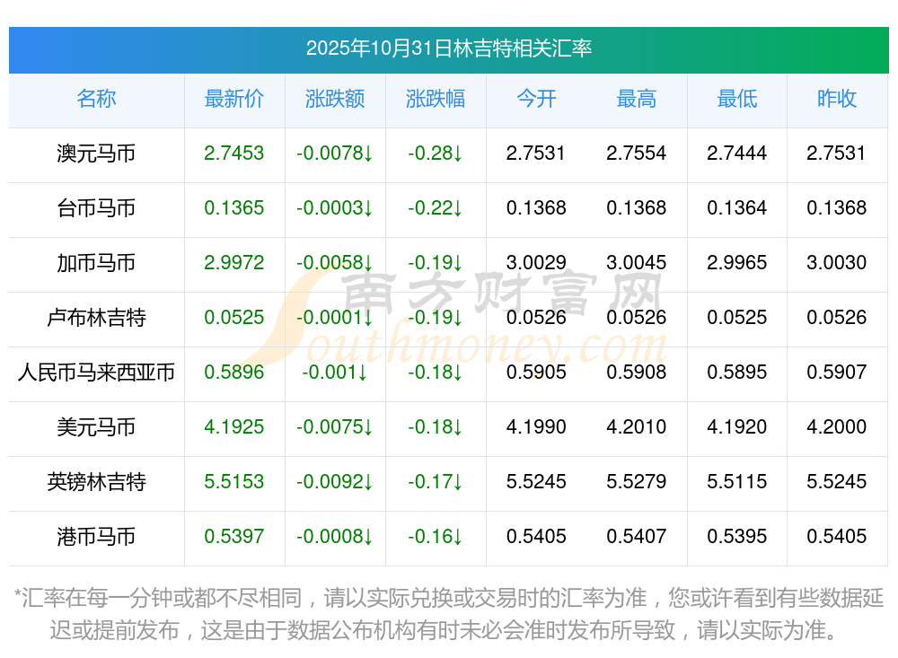 - 林吉特對(duì)埃及鎊匯率價(jià)格查詢(2025年10月26日)