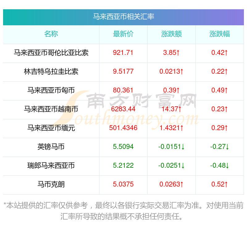 2025年11月1日馬來西亞幣相關(guān)匯率查詢