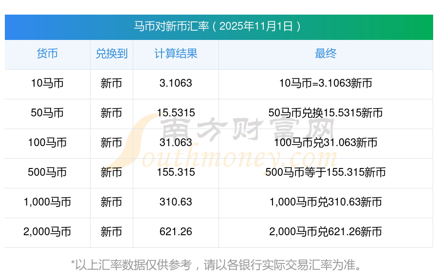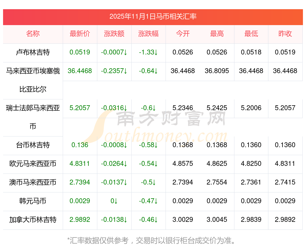 今日匯率:17馬幣兌換新幣匯率行情? 11月1日