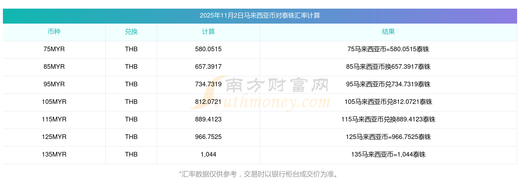 18馬來西亞幣今天折算泰銖匯率一覽表2025/11/02