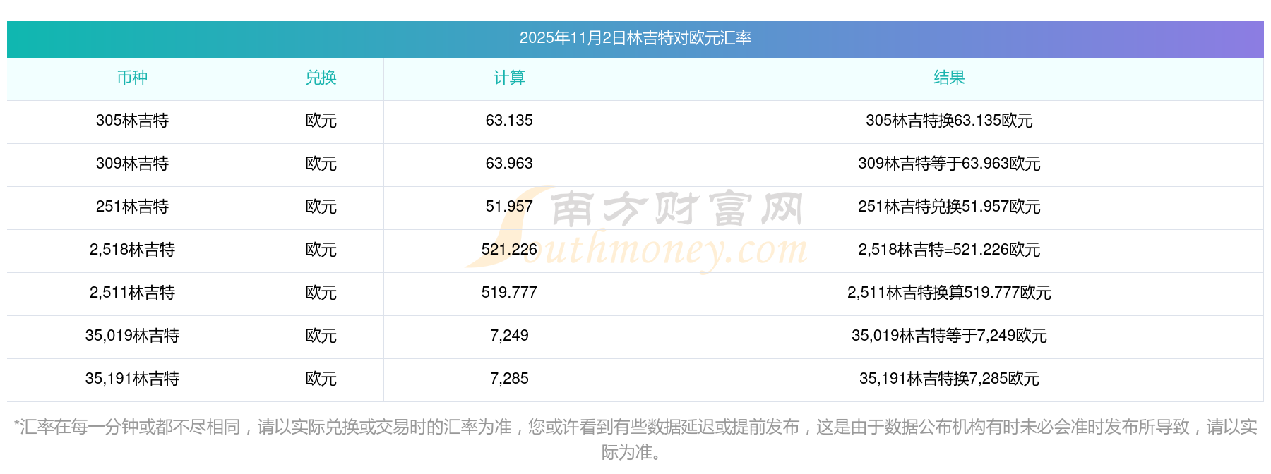今天林吉特對歐元匯率_8林吉特對歐元匯率多少(2025年11月2日)