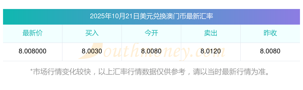 今日澳門幣匯率行情:100美元兌澳門元匯率多少(2025/10/21)