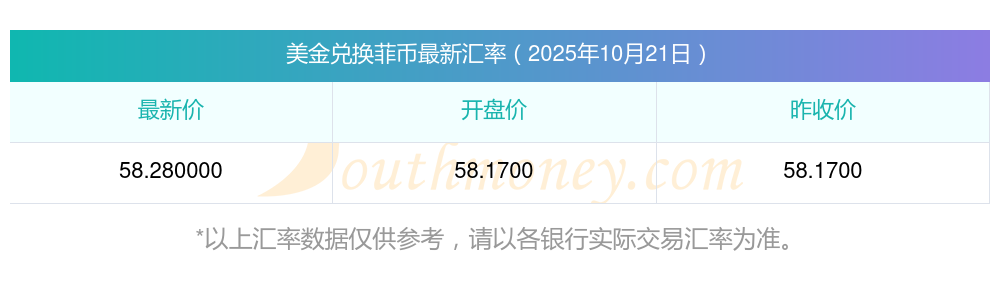 今日菲幣匯率行情:美元兌菲幣匯率多少(2025/10/21)