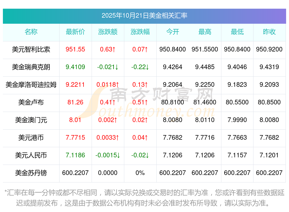 2025年10月21日美金相關(guān)匯率查詢