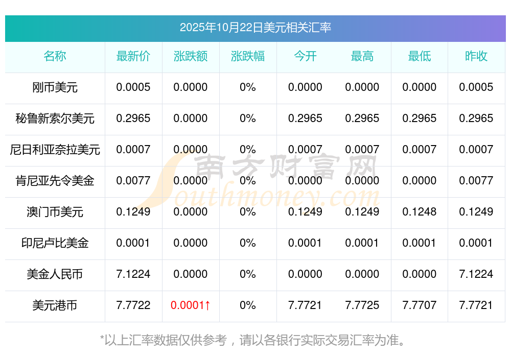 根據(jù)2025年10月22日匯率計算,USD兌換NZD匯率最新價1.742400,今開價1.7419,昨收價1.7418,最高價1.7448,最低價1.7400。