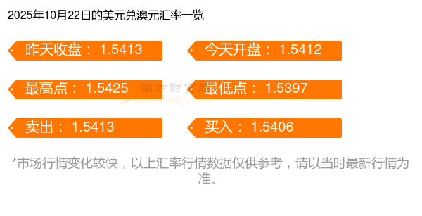 今天匯率行情:1美元兌澳幣匯率表(2025年10月22日)