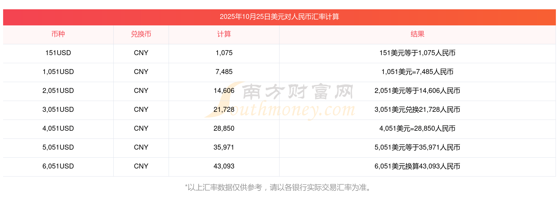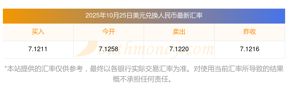 今天匯率行情:1美元兌人民幣匯率多少(2025-10-25)