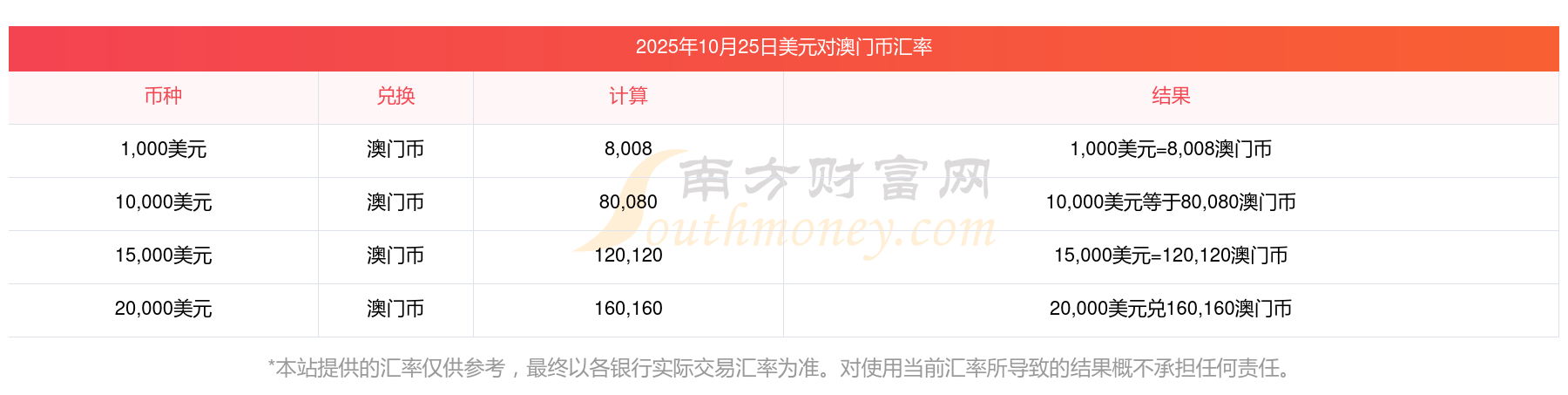 今天美元對(duì)澳門幣匯率_17美元對(duì)澳門幣匯率查詢(2025-10-25)