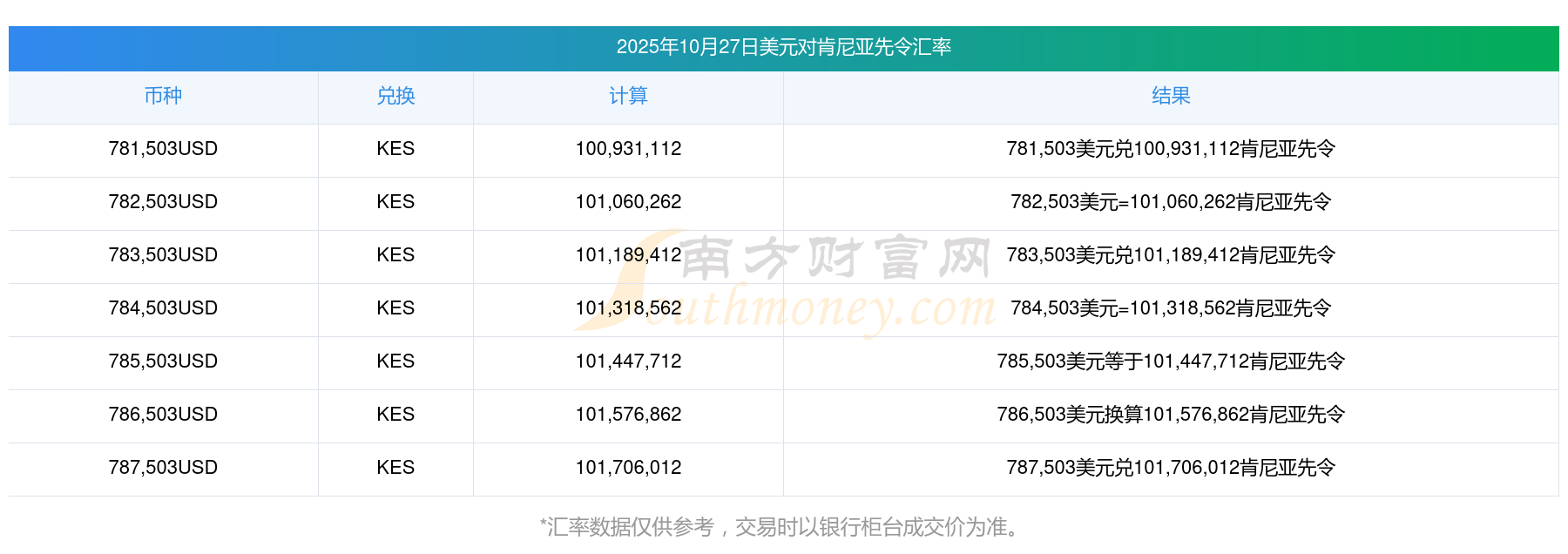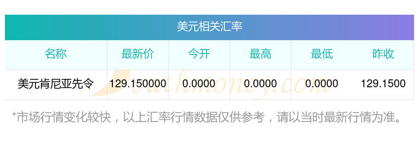 南方財(cái)富網(wǎng)為您提供美元對(duì)肯尼亞先令匯率最新價(jià)格詳情。