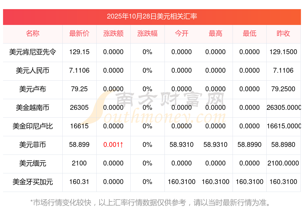 根據(jù)2025年10月28日匯率,美元兌換捷克克朗匯率最新價20.868000,今開價20.8870,昨收價20.8870,最高價20.8950,最低價20.8620。
