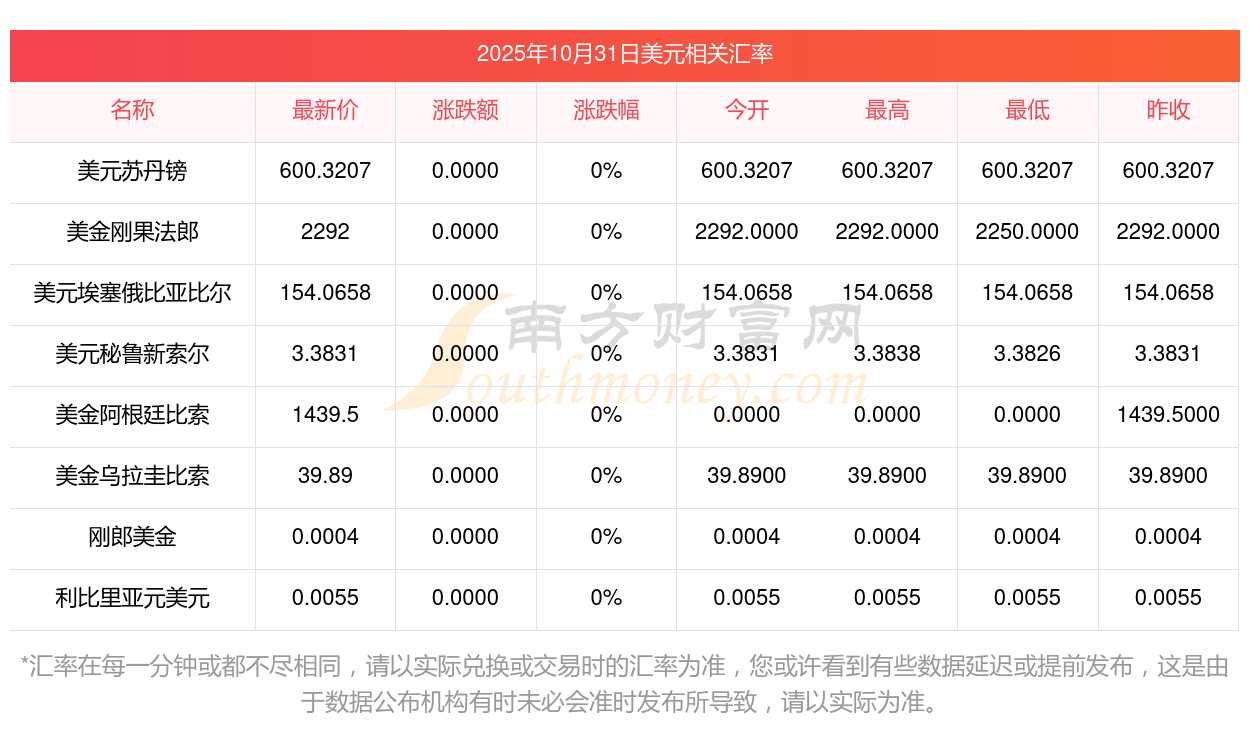 2025年10月31日美元相關(guān)匯率查詢