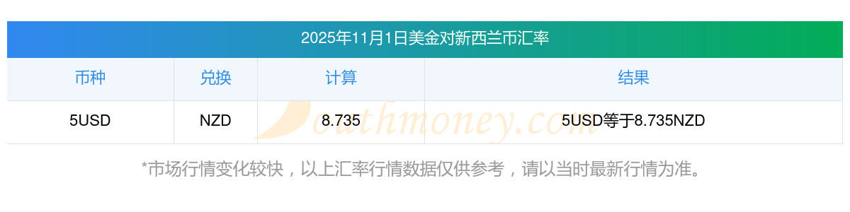 美金 兌 新西蘭幣 換算表2025年11月1日