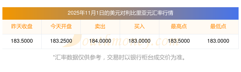 2025-11-01匯率調(diào)整:美元兌換利幣匯率一覽表