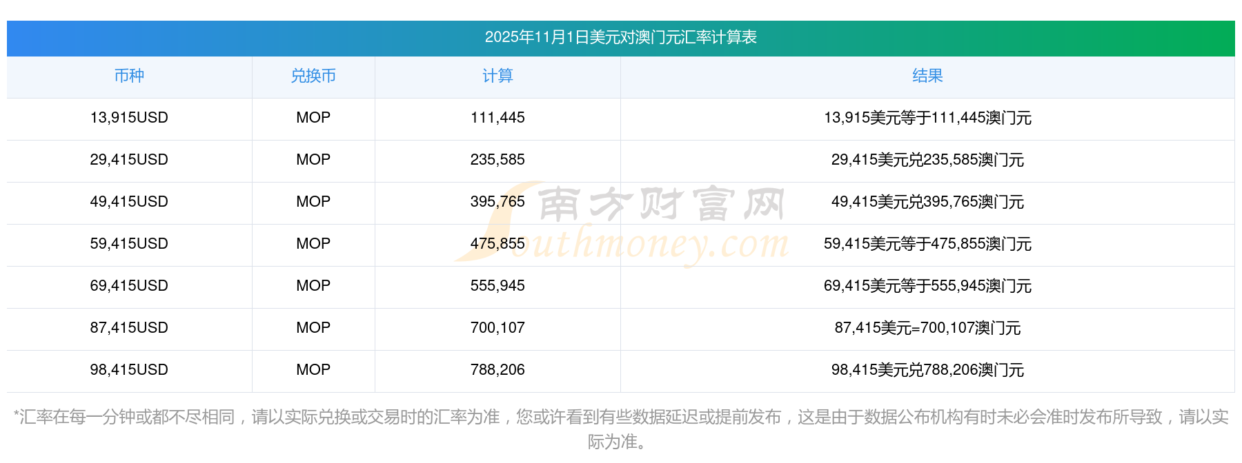 南方財富網(wǎng)為您提供美元對澳門元匯率最新價格詳情。