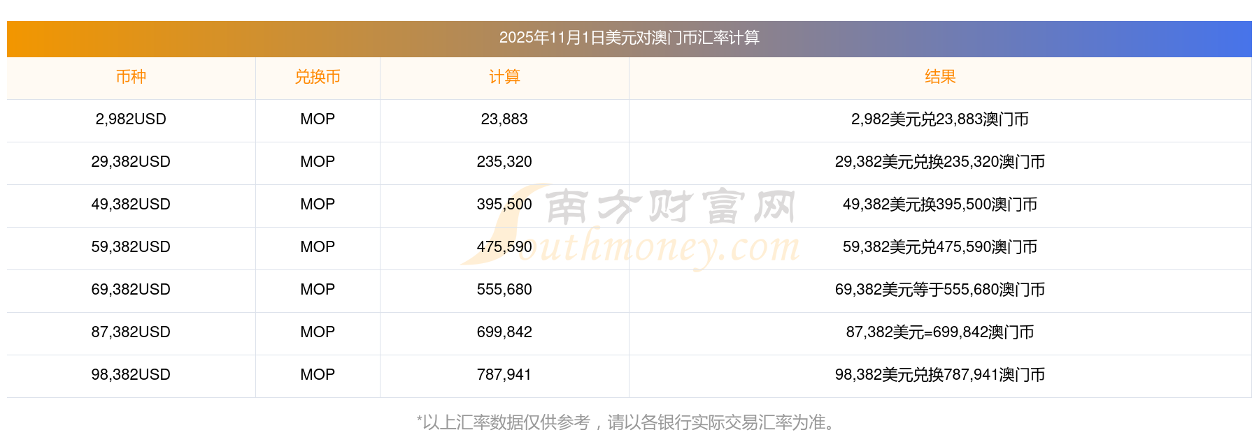 今天美元對澳門幣匯率_19美元對澳門幣匯率查詢(2025年11月1日)