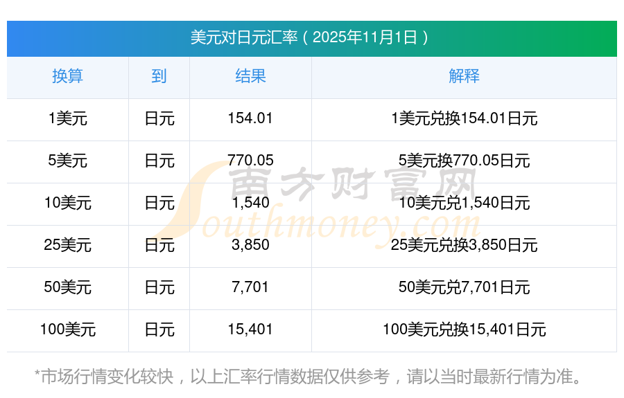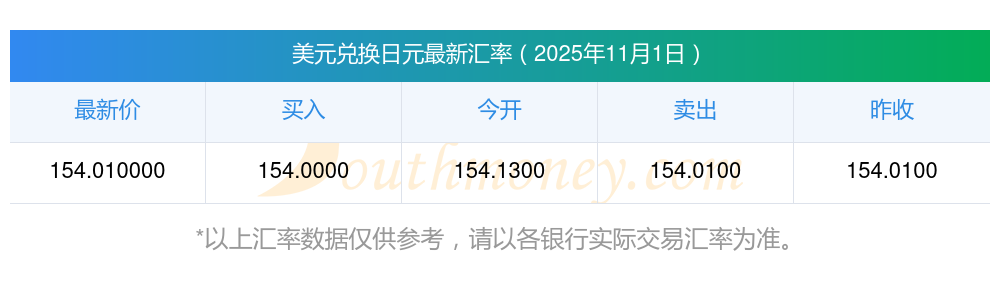 日元今日匯率實時查詢 109美元對日元匯率2025-11-1