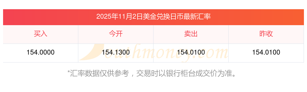 日幣今日匯率實時查詢 102美金對日幣匯率2025-11-02