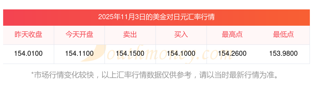 日元今日匯率實時查詢 101美金對日元匯率2025-11-3