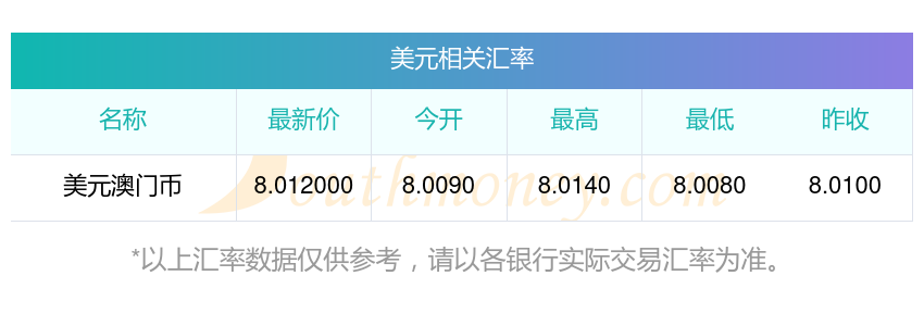 南方財富網為您提供美元對澳門幣匯率最新價格詳情。